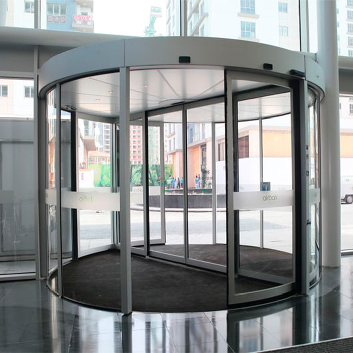 Карусельні двері досить прості в експлуатації та пристосовані до потреб людей в інвалідних візках. Багато функцій забезпечують високу пропускну здатність навіть у години найбільшого навантаження. Можливий вибір варіанта ручних розстібних або автоматичних розсувних дверей. Мають вбудований нічний екран із загартованого триплексу завтовшки 6,7 мм. Бічні стінки можуть бути в 2-х варіантах: скляними або залізними.